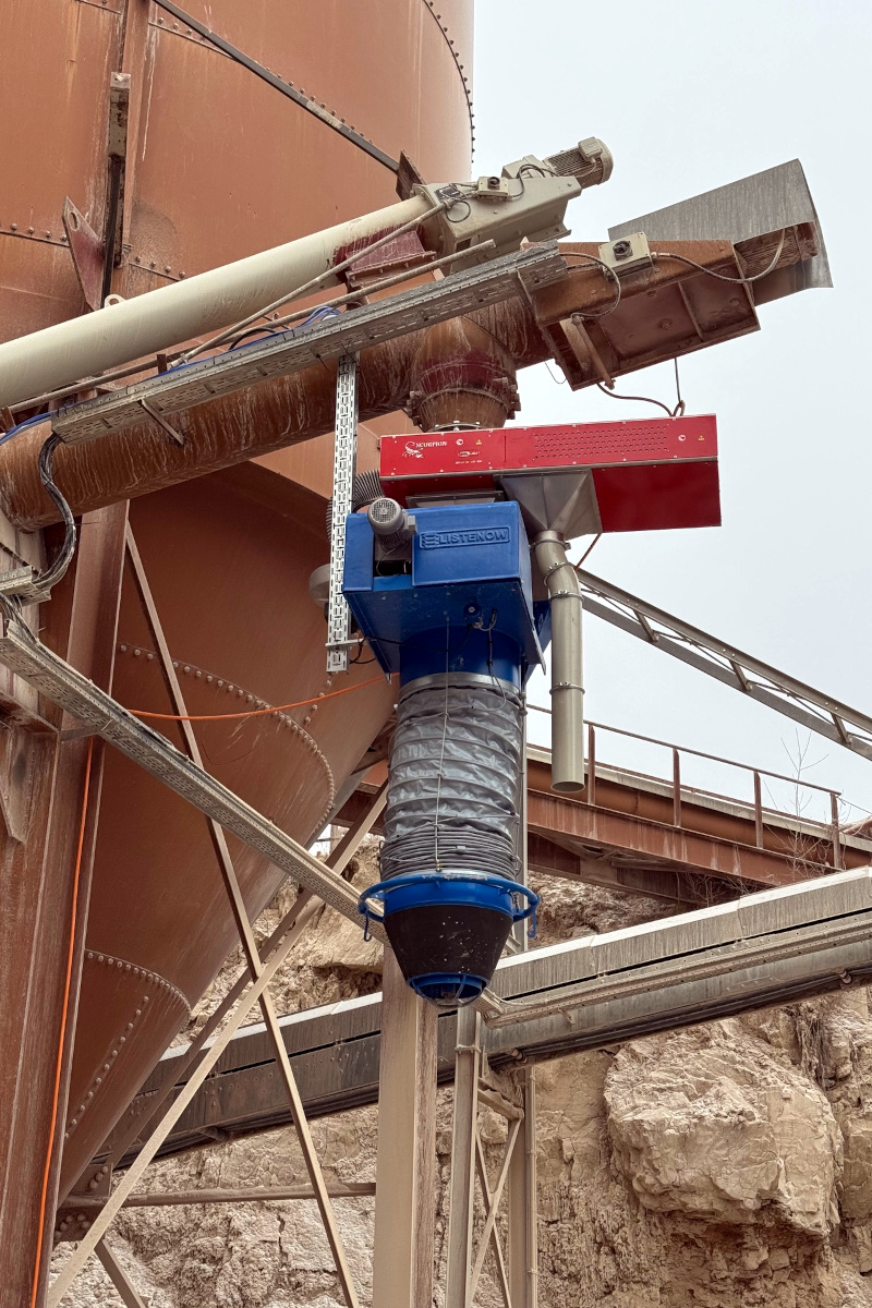 O fabrică de var de familie din Germania, implicată în exploatarea calcarului și producția de var, se confrunta cu particule metalice și ruginite în produsul de dolomit fin (< 0,1 mm). Materialul era transportat cu un transportor cu șnec; întregul proces trebuia să fie închis din cauza prafului și, în același timp, era necesară cea mai mică înălțime posibilă de instalare.