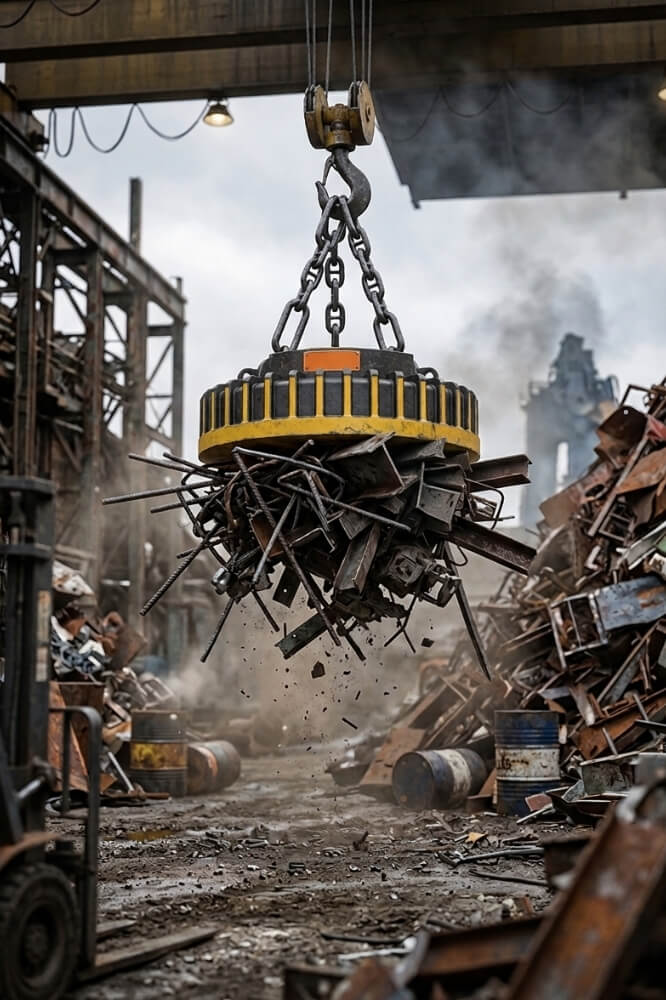 Magnet pentru fier vechi conceput pentru condiţii dificile