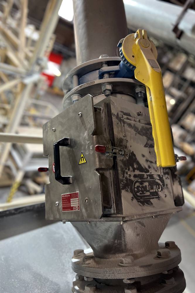 Clientul a avut nevoie să separe și impurități foarte fine cu dimensiunea de la 0,5 mm. Din acest motiv am ales varianta de separator echipată cu cei mai puternici magneți de neodim. Datorită acestui fapt, separatorul atinge o inducție magnetică extrem de ridicată, 7.500 G, și îndeplinește cerința clientului – separarea impurităților feromagnetice începând de la 0,5 mm. "Lanterna: magnetică este instalată pe o conductă cu diametrul de 200 mm. În fața separatorului este montată o clapetă acționată manual, care oprește fluxul de material pentru a permite curățarea impurităților reținute.
