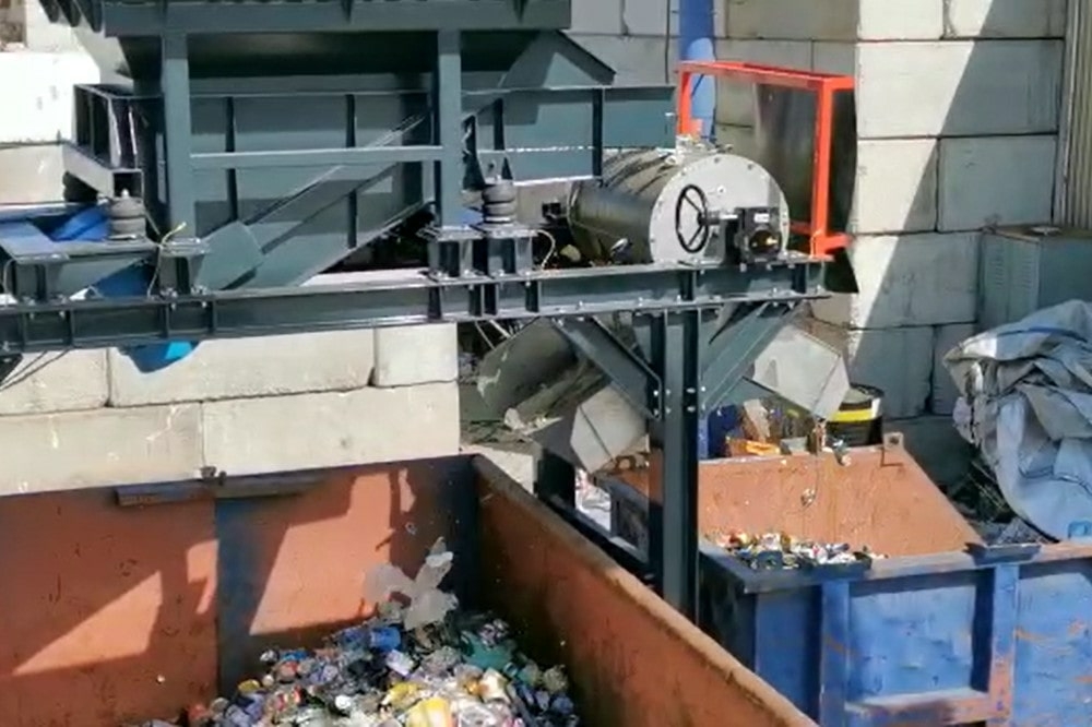 Linia de separare este echipată cu un buncăr, un alimentator vibrator și un tambur magnetic. Cutiile de conserve sunt introduse în buncăr, de unde cad pe alimentatorul vibrator. Datorită alimentatorului vibrator, cutiile sunt împrăștiate pe întreaga lățime a alimentatorului vibrator (și ulterior a tamburului magnetic), ceea ce este foarte important pentru calitatea finală a separării.