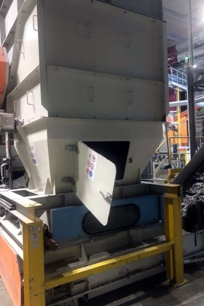 Rezolvarea acestei probleme a fost destul de dificilă, atât din cauza capacității de procesare relativ mari (5 tone/oră), cât și din cauza dimensiunilor variate ale particulelor de fier (de la 1 la 160 mm) din deșeurile de hârtie. Un alt factor problematic a fost alegerea separatorului magnetic potrivit și găsirea locului optim pentru aplicarea acestuia pe linia de procesare a clientului. Ca soluție cea mai simplă și suficient de eficientă, s-a considerat inițial suspendarea unei plăci magnetice cu curățare automată deasupra benzii transportoare care transporta hârtia mărunțită. Cu toate acestea, având în vedere că unghiul de înclinare al benzii transportoare era de 45°, utilizarea plăcii magnetice deasupra benzii transportoare a fost exclusă (dacă placa magnetică este suspendată la un unghi mai mare de 30°, banda sa de transport din cauciuc începe să alunece de pe role și șine de ghidare, iar placa nu poate funcționa corect). Deoarece separatorul magnetic nu putea fi suspendat deasupra benzii transportoare, a trebuit să amplasăm separatorul între buncărul de dozare și începutul benzii transportoare.