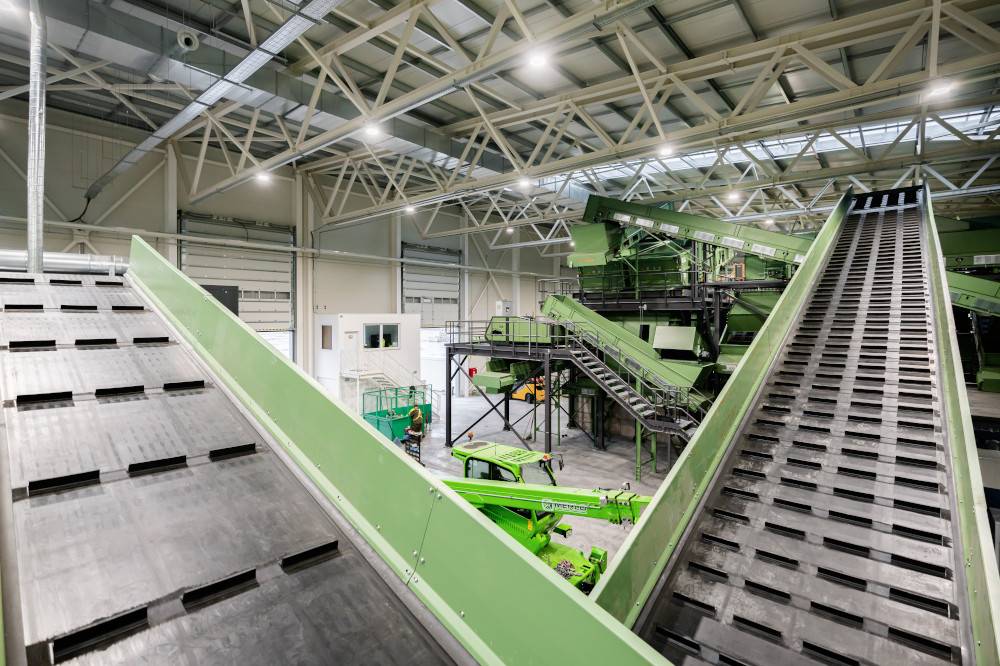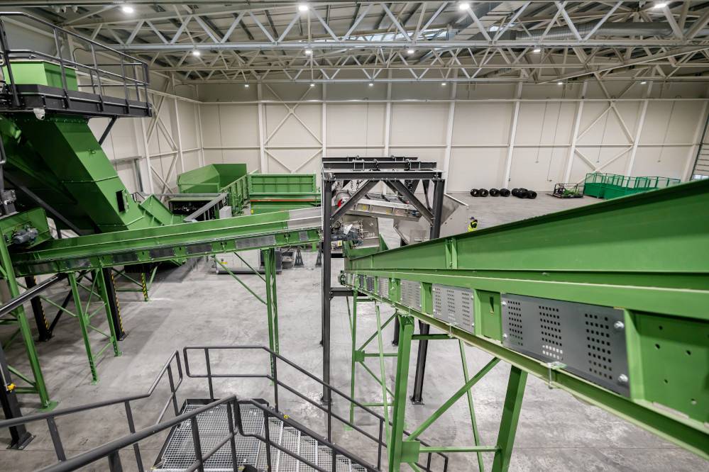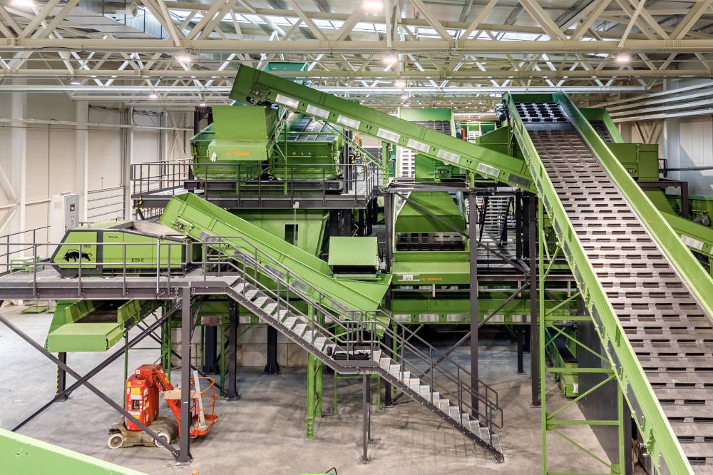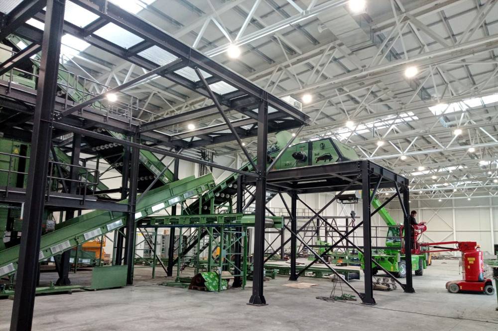 Linia de sortare automată pentru deșeurile municipale, plastic și hârtie. Capacitatea proiectată: deșeuri municipale - 31 t/h, deșeuri din plastic - 6 t/hr.