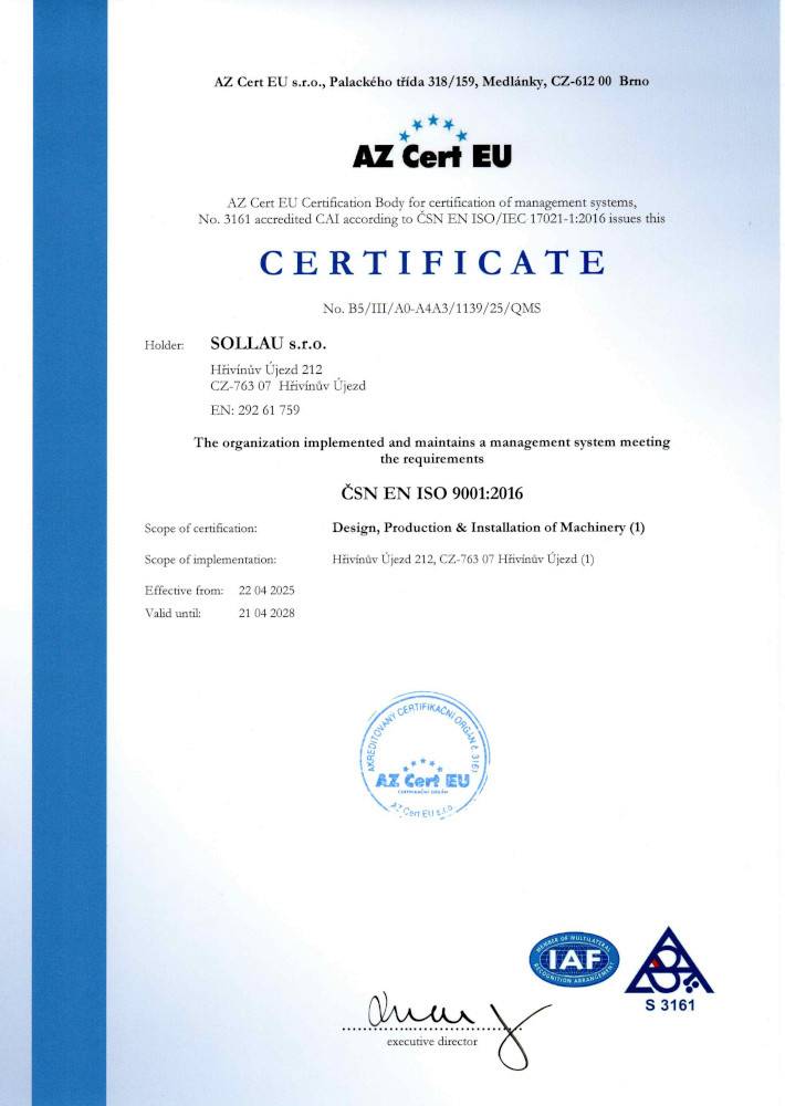 Proiect de inovare în cadrul SOLLAU s.r.o.