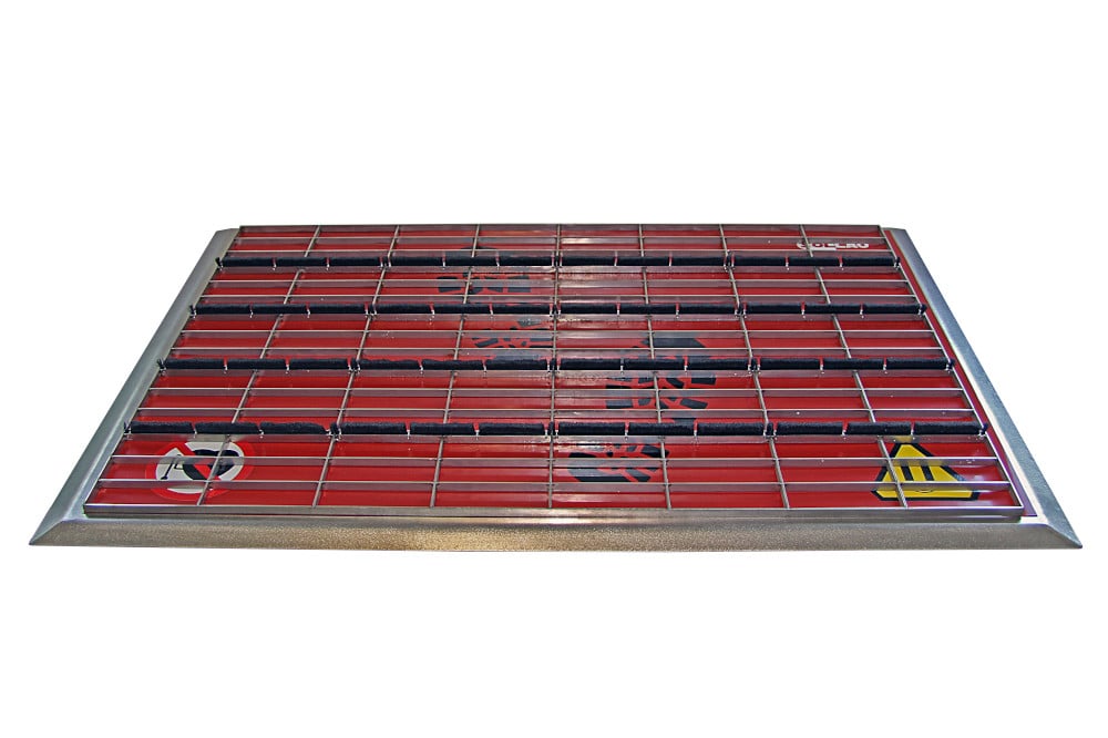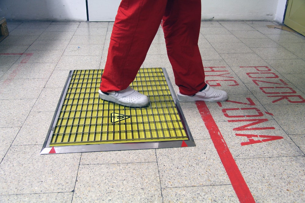 Spre deosebire de versiunea din oțel inoxidabil, covorul din plastic poate fi curățat cu apă sub presiune, ceea ce este foarte important, în special având în vedere condițiile stricte de igienă din industria alimentară sau farmaceutică.