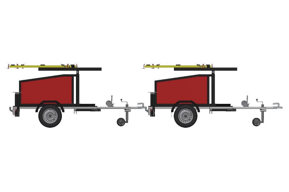 Poate fi atașat cu ușurință la bara de remorcare a vehiculului și transportat la locul dorit pe pistă. În această variantă puteți transporta 2 semnale luminoase în cruce în același timp.