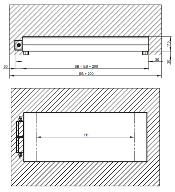 | EB: Zona de detecție (mm) | SB: Lățimea detectorului (mm) |