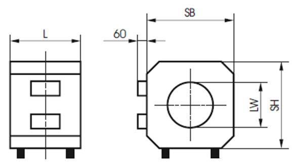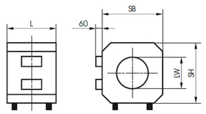 | LW: Diametrul deschiderii (mm) | SB = SH: Lățimea detectorului (mm) | L: Lungimea detectorului (mm) |