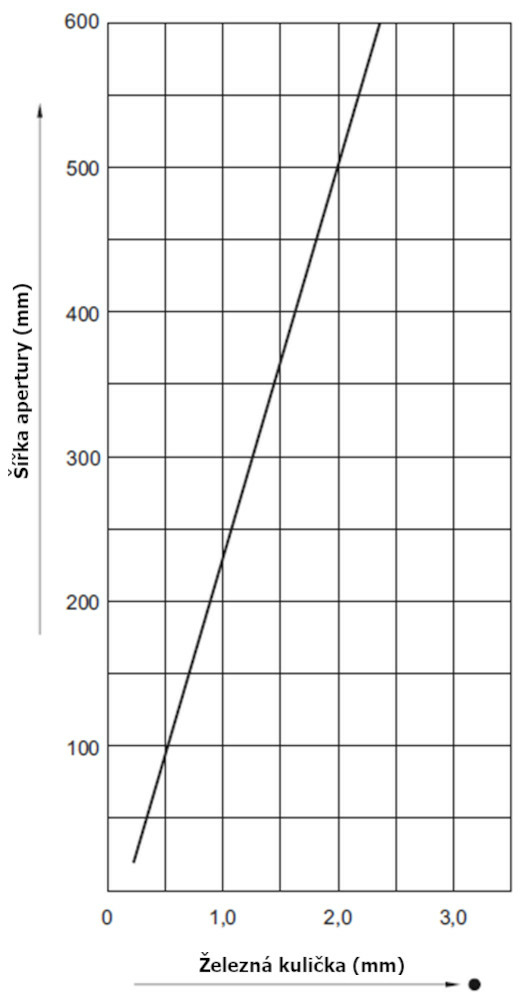 Sensibilitatea detectorului depinde de mai mulți parametri, cum ar fi diametrul deschiderii (cu cât diametrul deschiderii este mai mic, cu atât sensibilitatea detectorului este mai mare), viteza materialului, densitatea produsului, temperatura acestuia, umiditatea etc.