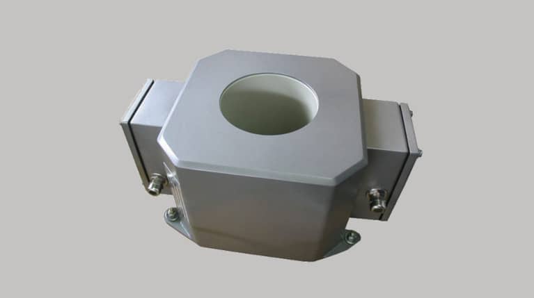 - Detector de metale cu orificiu rotund pentru instalarea în conductele de transport. Acesta detectează toate particulele metalice, atât libere, cât și sub formă de incluziuni în produsul final.