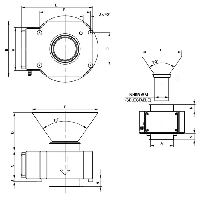 | H: (mm) | I: (mm) | J: (mm) | K: (mm) | L: (mm) | N: (mm) | Greutate (kg) |