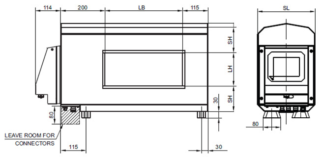 | LH: Înălțimea deschiderii (mm) | LB: Lățimea deschiderii (mm) | SH: Grosime | SL: Lungimea detectorului (mm) | SB: Lățimea detectorului (mm) |