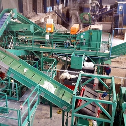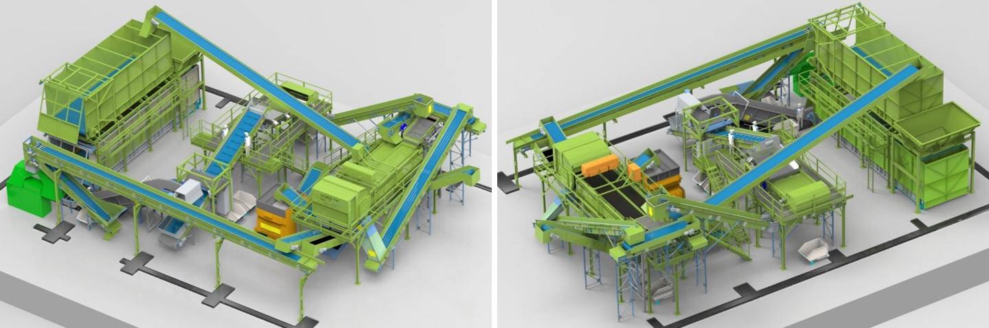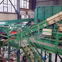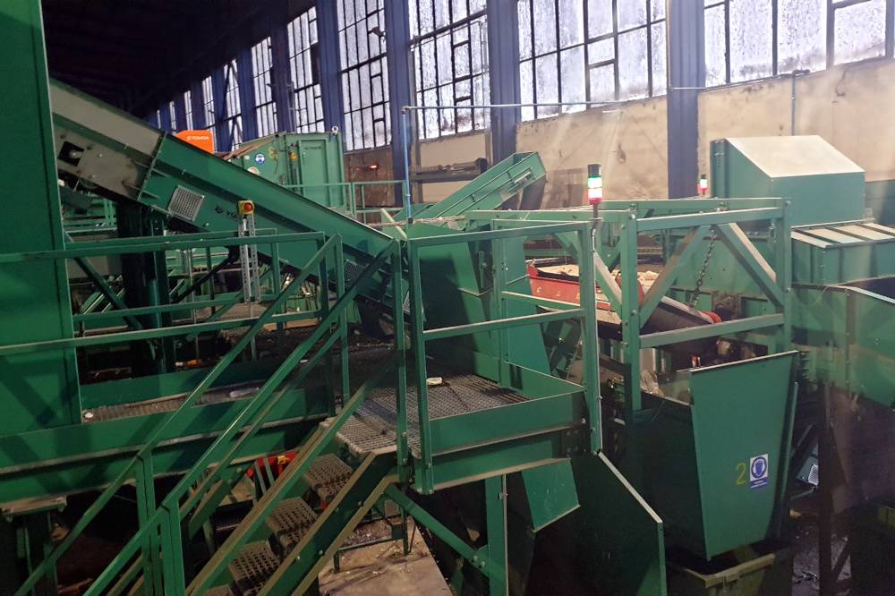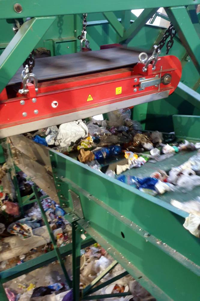 Linia automată de sortare a deșeurilor din plastic este proiectată pentru o capacitate de 1.500 kg/oră și este utilizată pentru tratarea deșeurilor păstrate în „pubele galbene”, adică sticle PET, cutii de aluminiu și fier.
