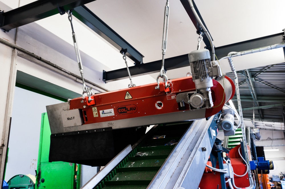 Soluția furnizată de către compania SOLLAU s.r.o.: a fost livrata o linie de separatoare pentru separarea atât a metalelor magnetice cât și a celor nemagnetice. Magnetul din ferită de deasupra benzii transportoare DND-AC Ms4 EKO, care are curățare automată, are un câmp magnetic profund și, de aceea, reușește să extragă obiecte feromagnetice dintr-o adâncime de până la 320 mm și, în același timp, protejează împotriva deteriorării de către particulele de fier și separatorul ECS-C 2000 RAM pentru metale nemagnetice.Rola magnetică cu neodim MV 245 N 1200 separă contaminanții din fier din straturile inferioare ale materialului și protejează separatorul cu Eddy curenți ECS-C 2000 RAM împotriva deteriorării. Separatorul ECS-C 2000 RAM pentru metale nemagnetice, având un rotor magnetic amplasat concentric, capturează într-un mod fiabil toate particulele de dimensiuni mai mari și bine conductoare nemagnetice.