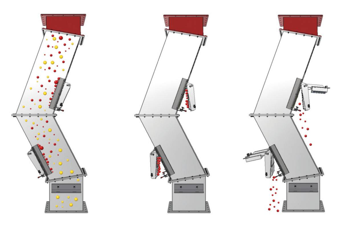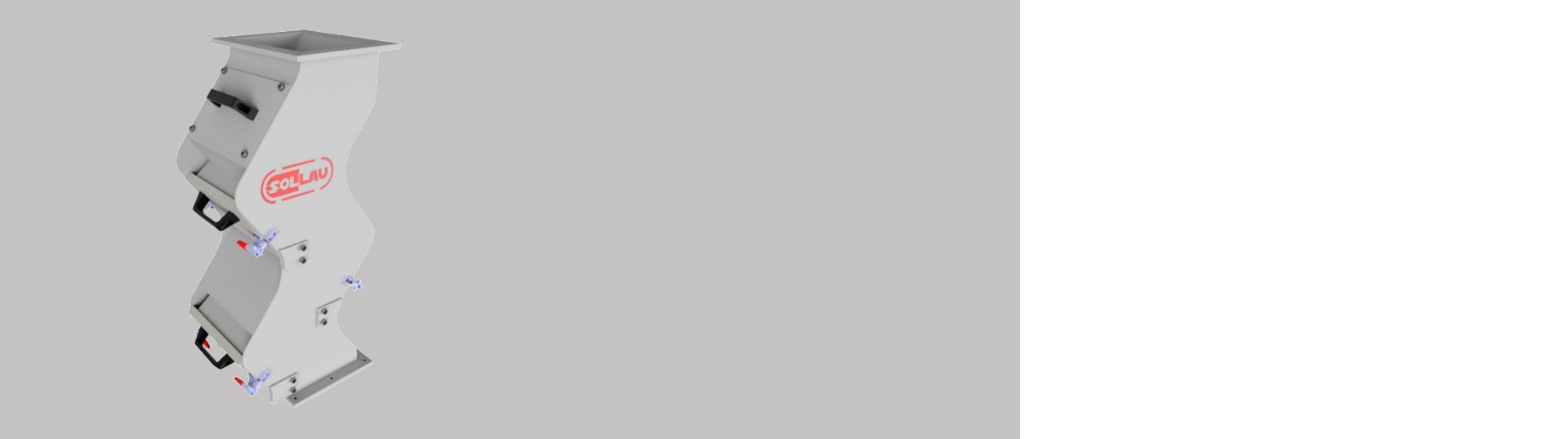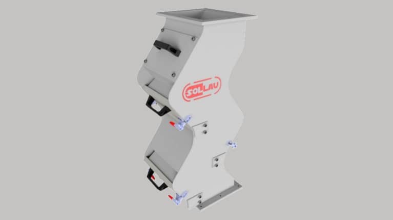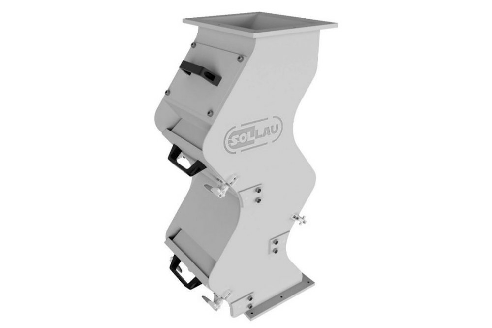 Separatorul magnetic în cascadă SOLLAU este echipat cu un set de plăci magnetice mari din care impuritățile feromagnetice pot fi îndepărtate cu ușurință datorită sistemului de extracție (după deschiderea ușii magnetice, miezul magnetic va fi împins departe de placa protectoare din oțel inoxidabil și particulele feromagnetice acumulate pe suprafața sa se vor prăbuși spontan).