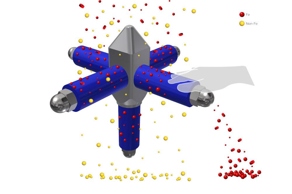 Este conceput pentru a separa particulele feroase de materialele in vrac uscate, care curg liber (cum ar fi regranulate, materiale din plastic zdrobite, resturi din plastic, matrițe respinse etc.).