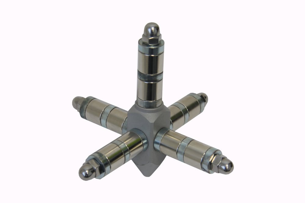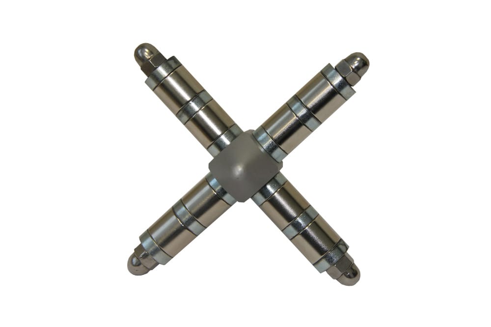 Separatorul magnetic in forma de stea pentru buncărele mașinilor de injecție este proiectat pentru a separa particulele feroase de materialele uscate care curg liber (cum ar fi negranulate, materiale din plastic zdrobite, resturi din plastic, matrițe respinse etc..). Magnetul pentru buncăr protejează mașinile de turnare și alte echipamente de prelucrare de posibila deteriorare generata de particule feromagnetice.