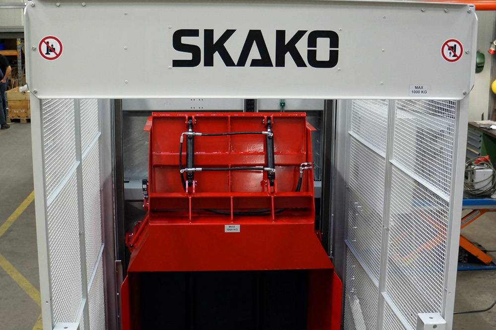 - Ridicare și basculare într-un singur pas – dispozitivul combină ridicarea verticală și bascularea ulterioară, permițând bascularea materialului la înălțime fără a fi necesare alte dispozitive de manipulare.