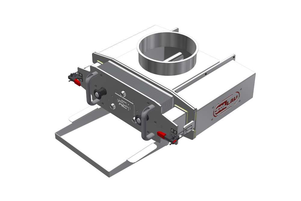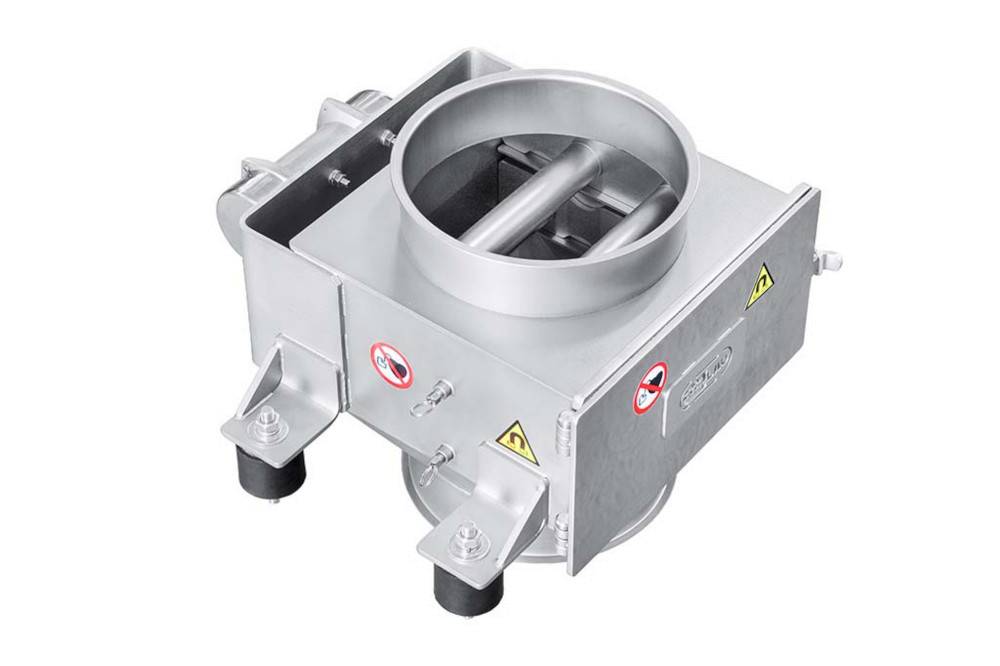 Acest separator magnetic special cu grilă este echipat cu o flanșă de oțel extrem de robustă (dar în același timp și ușoară), are o înălțime foarte mică de construcție și este prevăzut cu o clapetă pentru întreruperea manuală a fluxului de material în separator. Toți acești parametri predefinesc acest separator pentru instalațiile sau liniile în care întreruperea centrală a fluxului de material în separator ar putea fi problematică sau nepotrivită.