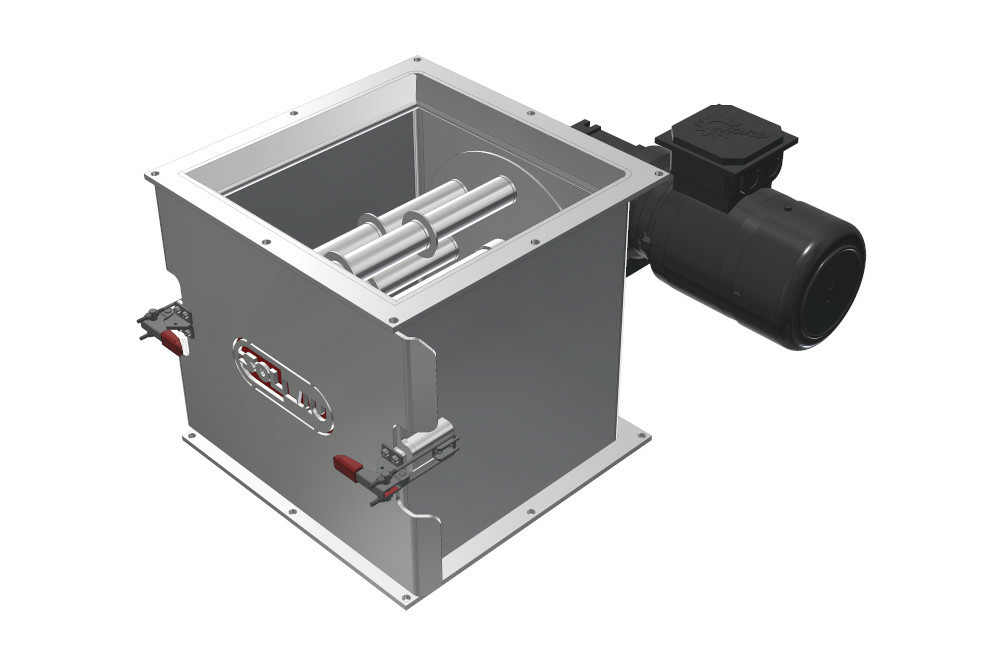 Separatorul magnetic rotativ MSR-MC cu sistem curățare ușoară asigura o separare foarte eficientă și rapidă a celor mai fine particule feromagnetice (de la 30 μm în dimensiune) pentru materialele in vrac (cum ar fi cereale, făină, pulbere, praf de săgeată etc.) care au tendința de a crea poduri si care ar putea genera blocaje, de exemplu, in cazul separatoarelor magnetice obișnuite echipate cu grile statice.