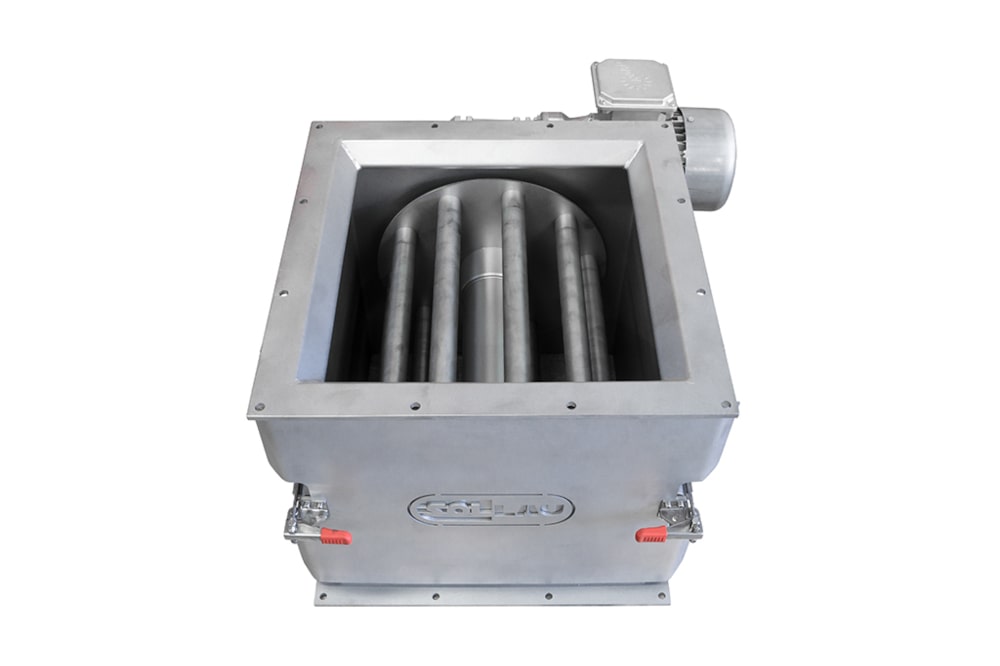 Portofoliul nostru de produse include, de asemenea, separatoare rotative echipate cu două grile magnetice plasate pe același ax (adică, axa poartă un inel magnetic interior și exterior). O astfel de configurare permite de fapt pentru o separare cvadrupla (comparativ cu separatoarele statice cu o singură linie de grilă) comparativ cu separatoarele statice cu o singură linie de grilă) Acesta este motivul pentru care acest tip de separator este de obicei folosit în industriile în care puritatea materialului este un factor critic (e. g., în industria farmaceutică).