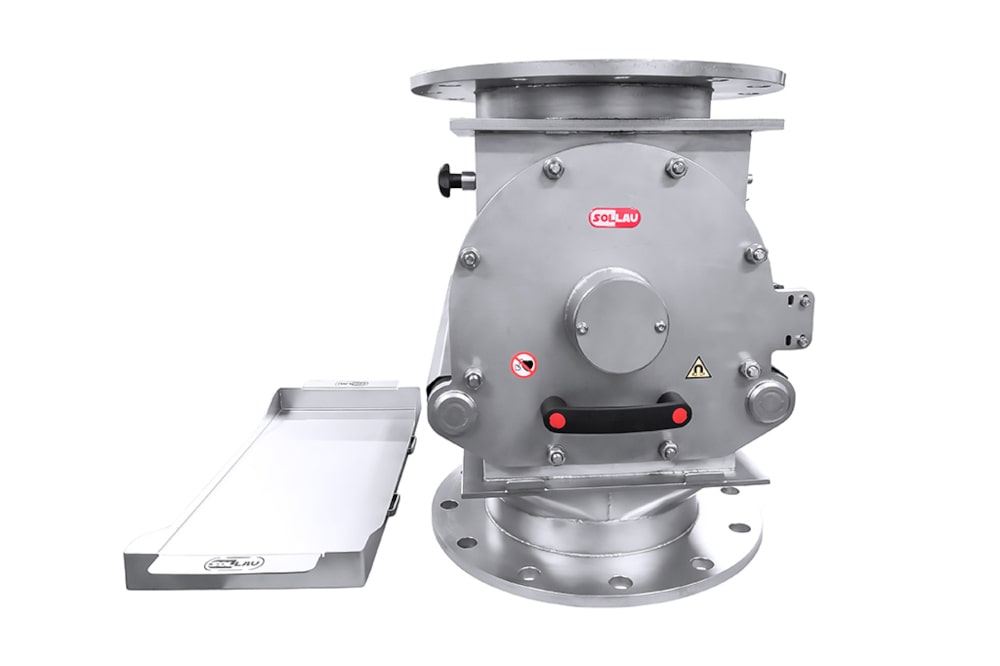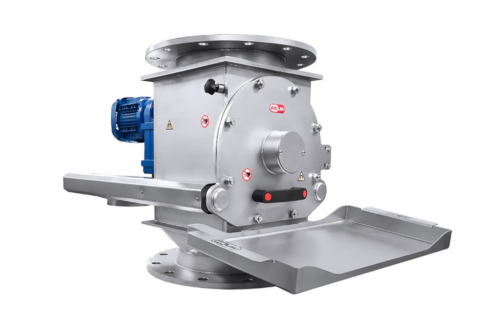 La cerere, separatorul poate fi, de asemenea, echipat cu o poarta de închidere pentru o întrerupere manuală a fluxului de material în separator, precum și cu o încuietoare de siguranță mecanică sau electromagnetică etc.