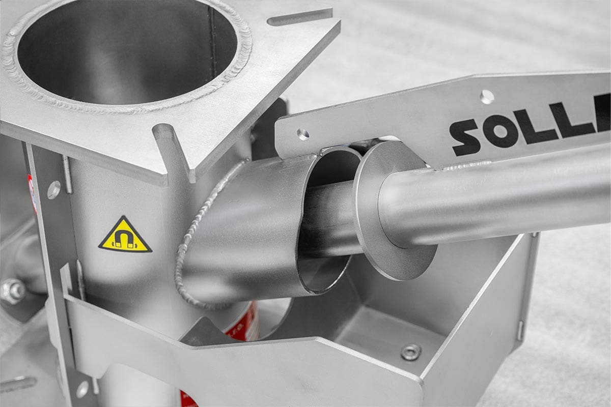 Funcționează fiabil chiar și la umplerea completă cu material. Captează continuu impuritățile metalice din granule, fără a fi necesară menținerea unui pasaj liber. Nu este nevoie să întrerupeți fluxul de material în timpul curățării separatorului!