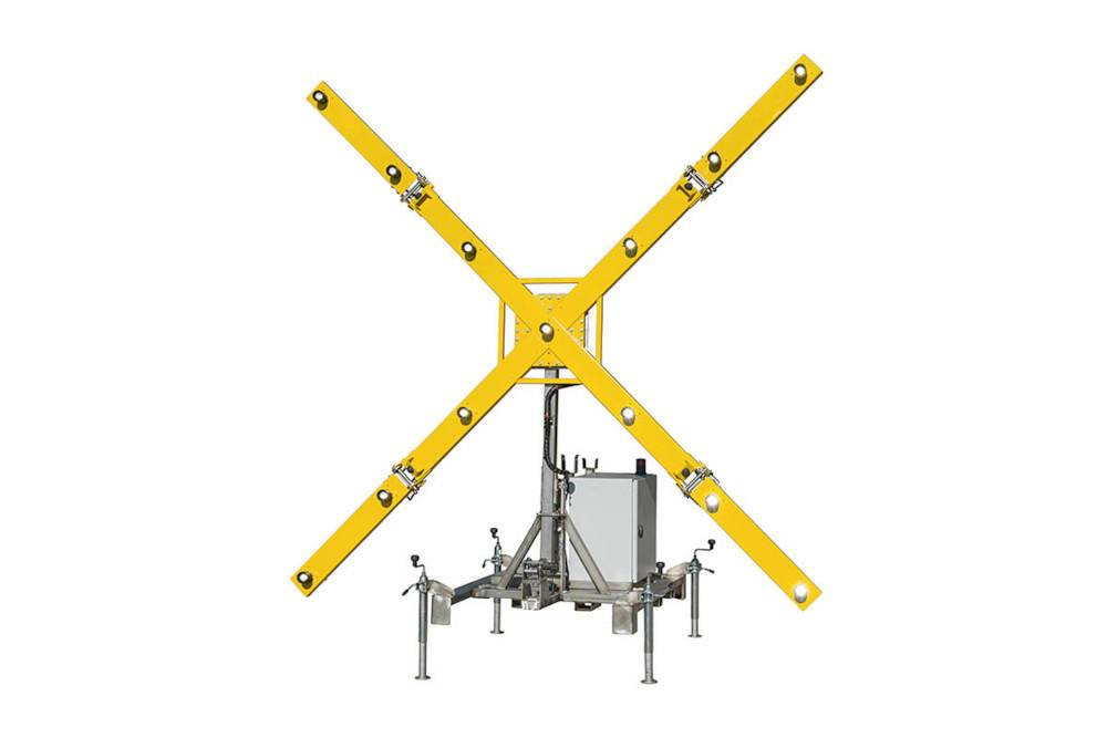 - Cu șasiu (FIREFLY) – semnalul luminos în cruce este amplasat pe un șasiu cu picioare stabilizatoare. Poate fi atașat cu ușurință la bara de remorcare a vehiculului și transportat la locul dorit pe pistă. În această variantă puteți transporta 2 semnale luminoase în cruce în același timp.